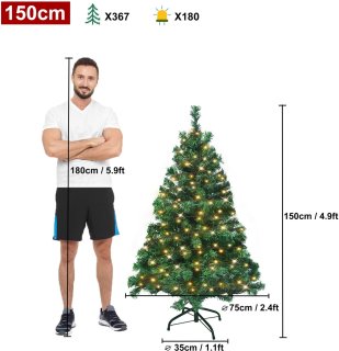 - Onderhoudsarme verlichting — de boom heeft ingebouwde warmwitte LED-lampjes en wordt geleverd met stroomkabel. Stekker in het stopcontact en hij straalt meteen; je hoeft geen extra verlichting te kopen.