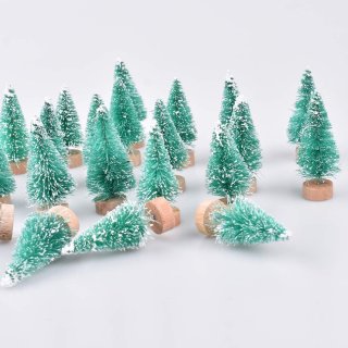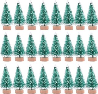 Breng een warme, feestelijke sfeer aan tafel, in je kerst-diorama of op een vensterbank met deze charmante mini kerstbomen. De set van 24 realistische boompjes is gemaakt van sisalkunststof met een biegsame draadmiddenstam en een stevig rond houten voetje. Elk boompje is licht besneeuwd afgewerkt voor dat typische winterse effect — perfect voor kerstdecoraties, knutselprojecten en tafereeltjes.