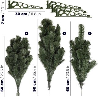 - Levering: exclusief verlichting, versiering en sneeuwdecoratie (je kunt zelf lampjes en ornamenten toevoegen).