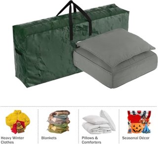 - Veelzijdig in gebruik: gebruik de tassen om takken, boomtoppen, slingers en dozen met ornamenten samen te bewaren — alles bij elkaar en klaar voor het volgende seizoen.