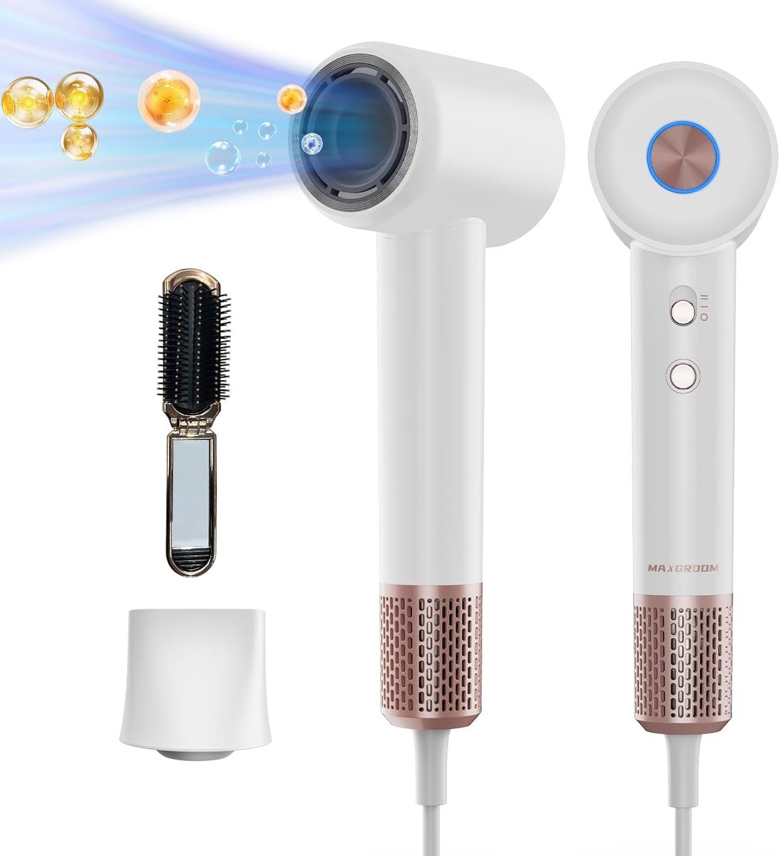 - Supersnelle prestaties: Met een krachtige 110.000 RPM borstelloze motor droog je je haar razendsnel, ideaal voor drukke ochtenden of als je snel wilt vertrekken.