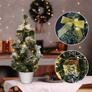Geef elke ruimte een gezellige kerstsfeer met deze realistische 40 cm hoge kunstkerstboom. Met zorgvuldig vormgegeven takken, kleurrijke versiering en geïntegreerde verlichting is dit de perfecte keuze voor wie snel en zonder gedoe wil genieten van een feestelijke uitstraling — ideaal voor op bureau, vensterbank, schoorsteenmantel of in etalages.