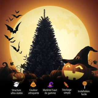 Transformeer je huis, winkel of kantoor dit seizoen met deze opvallende zwarte kerstboom van 225 cm. Met een luxueuze, volledig zwarte finish geeft hij elke ruimte direct sfeer en een moderne, sinistere twist — perfect voor Halloween en stijlvolle seizoensdecoratie.