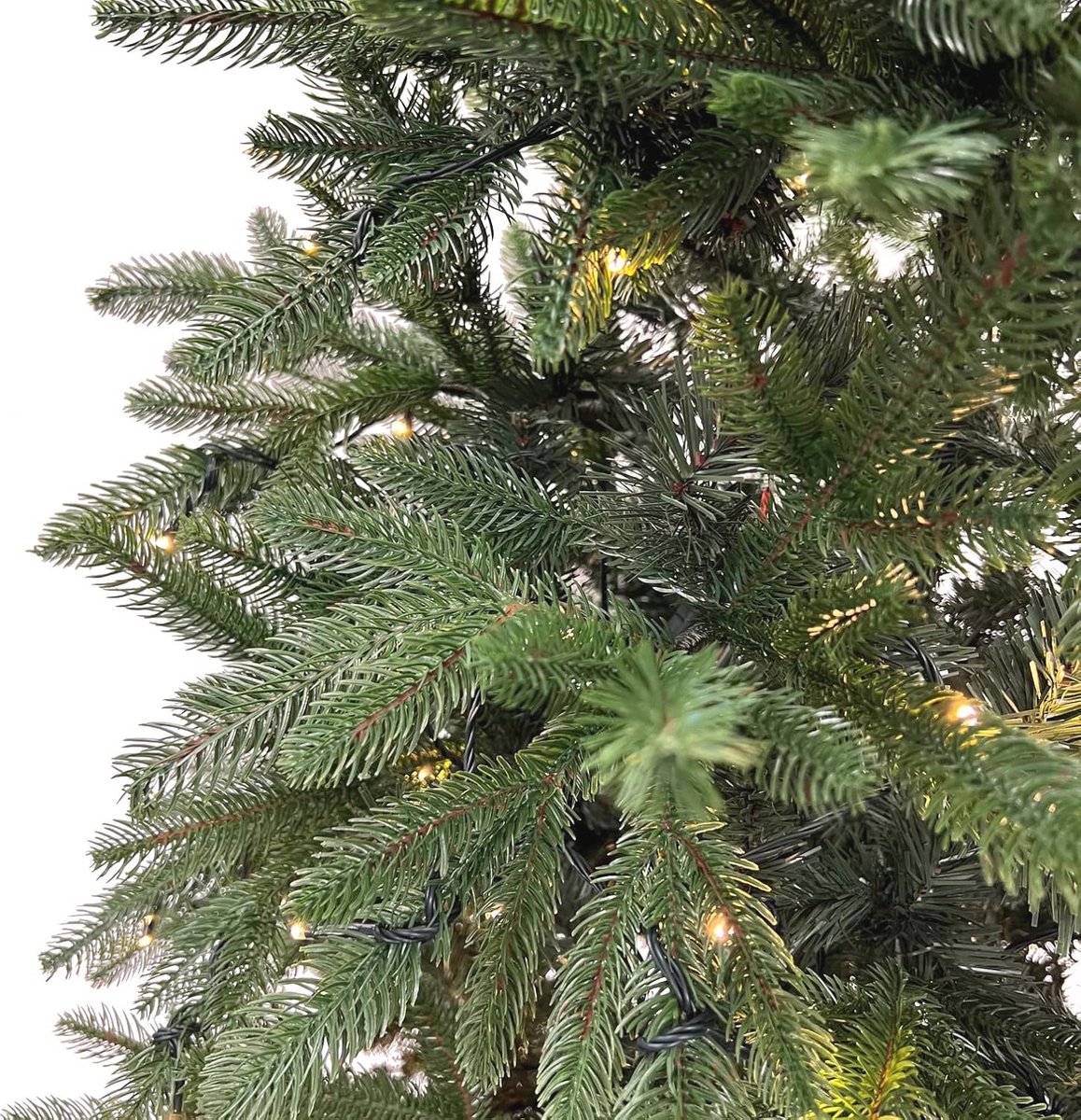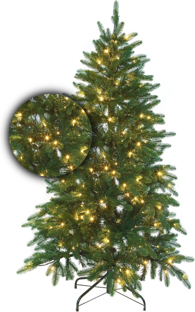 De ingebouwde 350 LED-lampjes zorgen voor een warm en sfeervol licht dat direct de feeststemming verhoogt. Deze energiezuinige verlichting straalt een gezellige gloed uit, waardoor uw kerstdecoratie meteen een betoverende uitstraling krijgt. Dankzij het meegeleverde aansluitsnoer van 5 meter kunt u de boom eenvoudig plaatsen op de gewenste locatie, zonder gedoe.