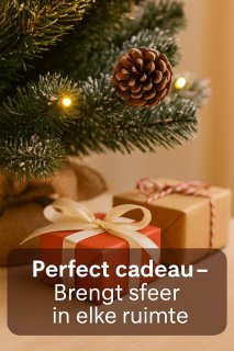 Deze mini-kerstboom is de perfecte keuze wanneer u snel en stijlvol kerstdecoratie wilt toevoegen zonder gedoe of veel ruimteverlies. Makkelijk verplaatsbaar, direct sfeervol en eenvoudig persoonlijk te maken met uw favoriete ornamenten.