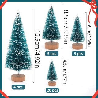 Breng dit jaar een sfeervol mini-winterbos in huis met deze set van 34 decoratieve kerstboompjes. De verschillende formaten geven diepte en uitstraling aan je kerstdecoratie: van tafelschikking tot vensterbank en van miniatuurdorpjes tot etalages. Elke boom is afgewerkt met kunstsneeuw en staat stevig op een houten voet, zodat je ze gemakkelijk kunt plaatsen en combineren.