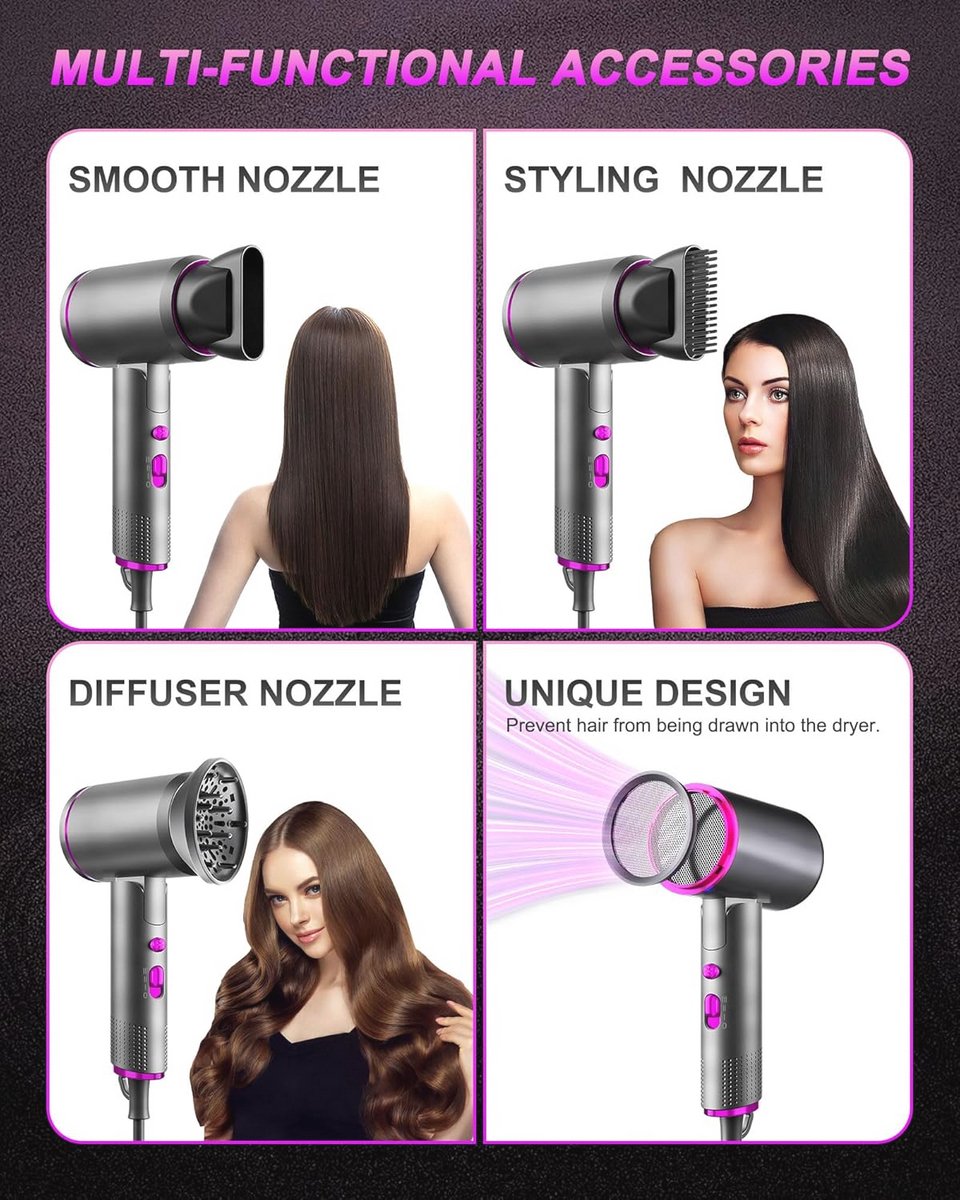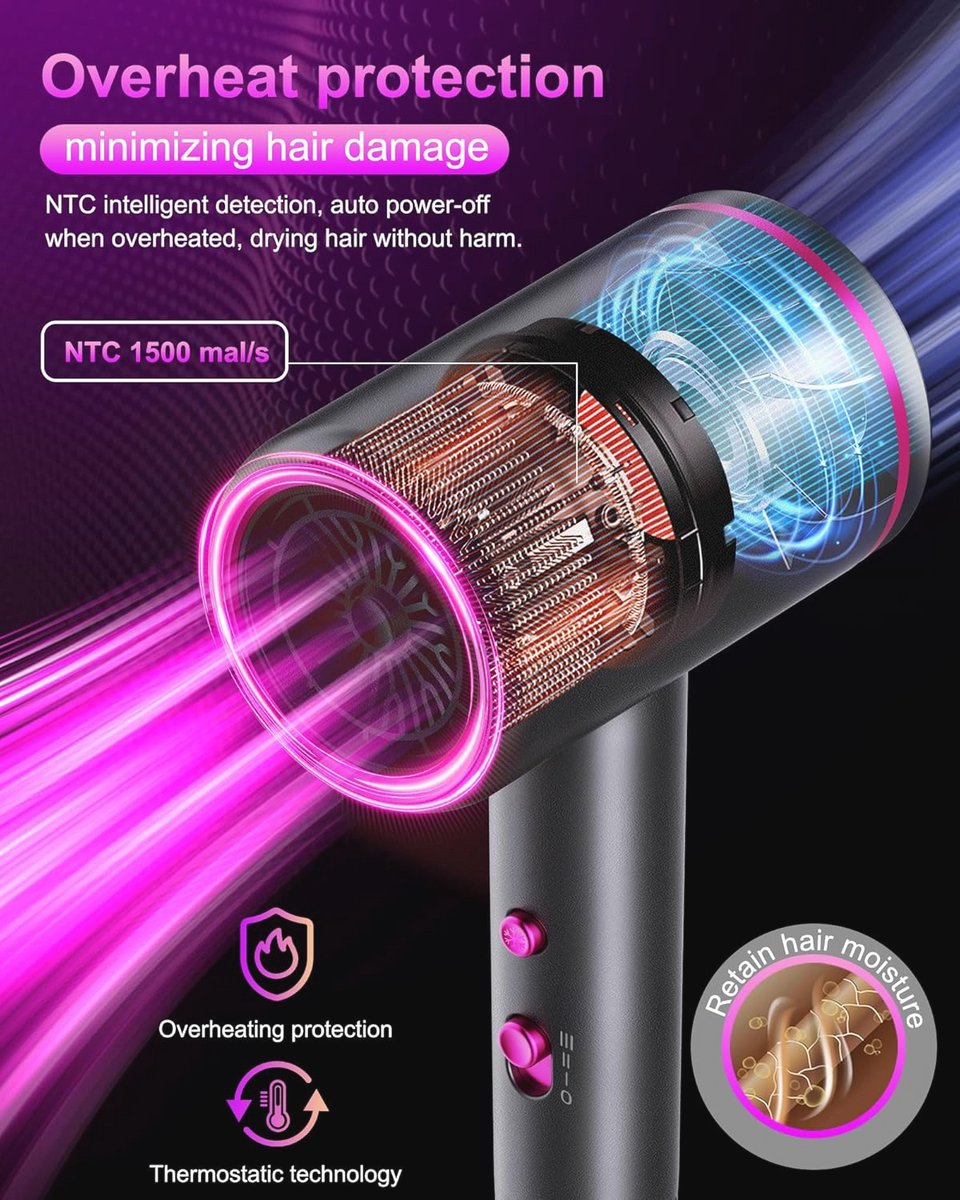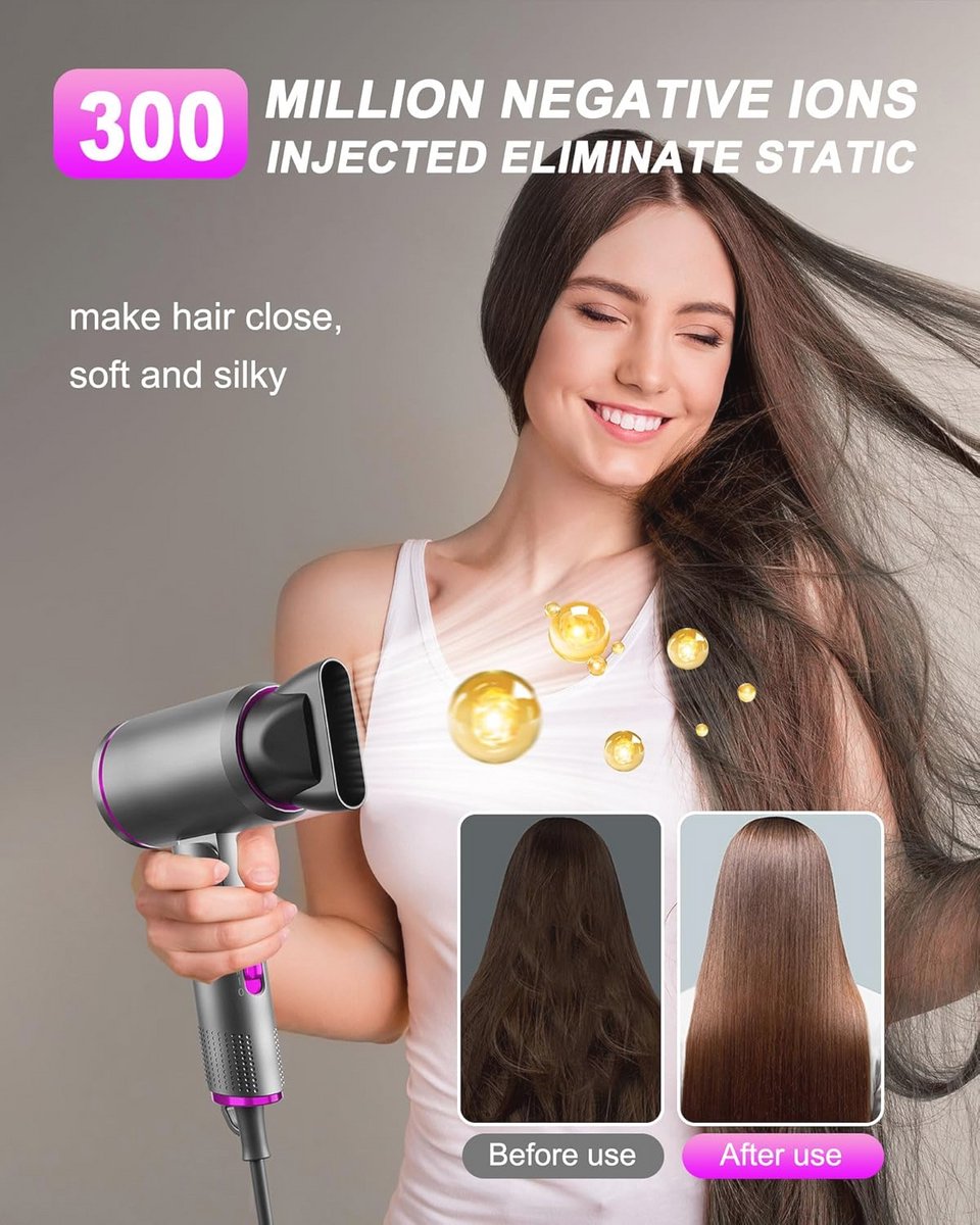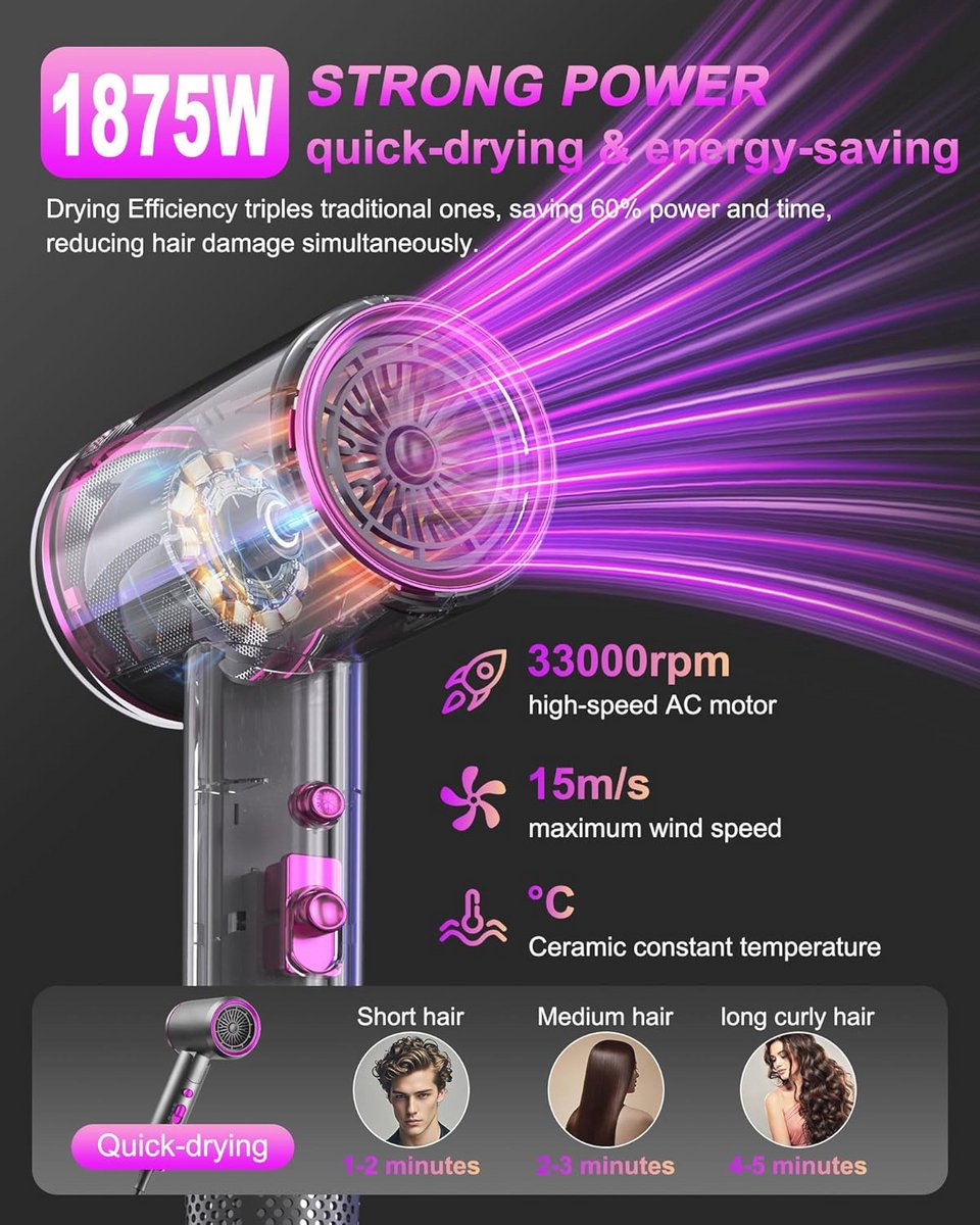 Met een indrukwekkend vermogen van 2400 watt droogt deze föhn je haar razendsnel. Dankzij de innovatieve sneldrogende technologie bespaar je tijd tijdens je stylingroutine, terwijl je verzekerd bent van een stralend resultaat. Of je nu krullend, steil of volumineus haar wilt creëren, deze föhn past zich moeiteloos aan jouw wensen aan.